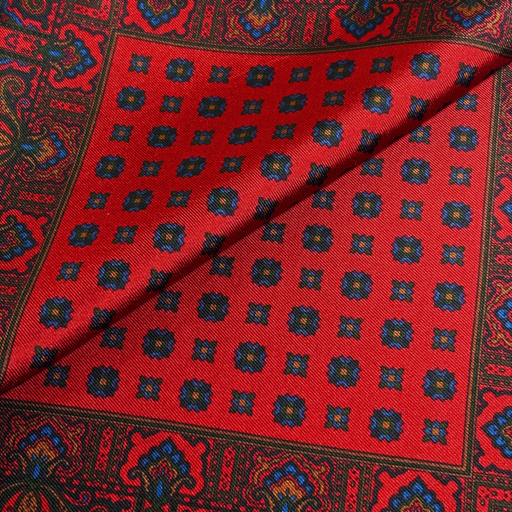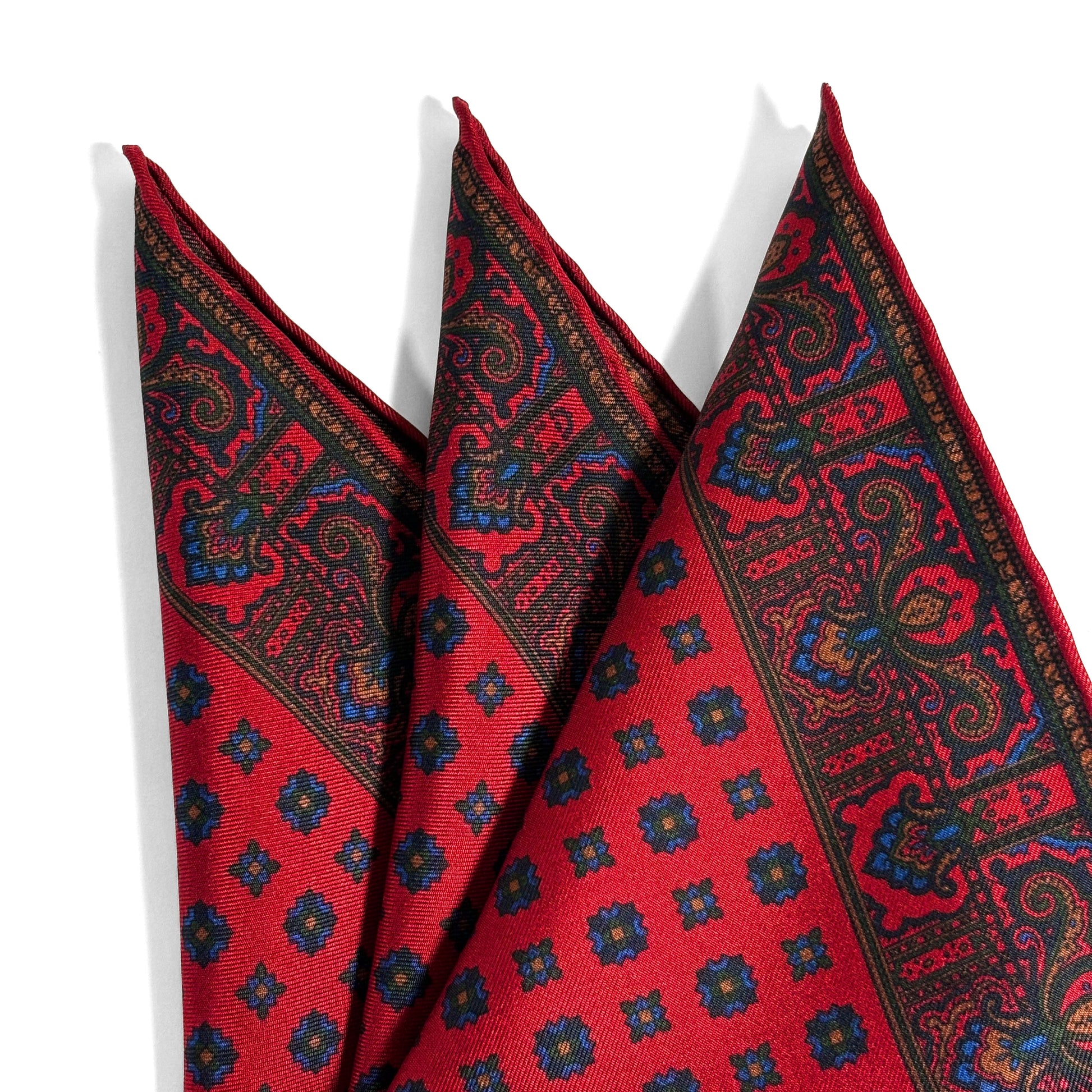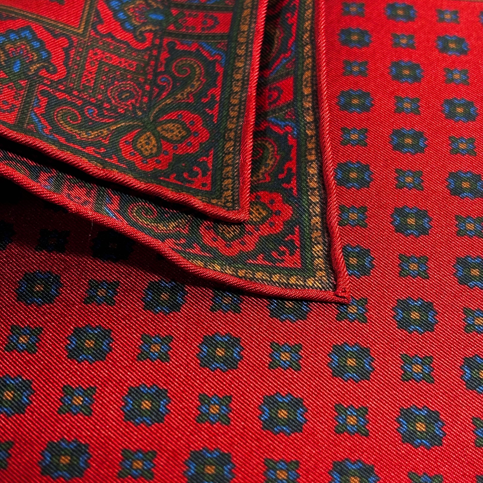 Crafted from madder-dyed 100% silk twill and handmade in England, this pocket square reflects the enduring legacy of British textile excellence. Produced in the historic town of Macclesfield—renowned for centuries of silk craftsmanship—each piece is hand-sewn with hand-rolled edges, offering refined structure and depth in every fold.