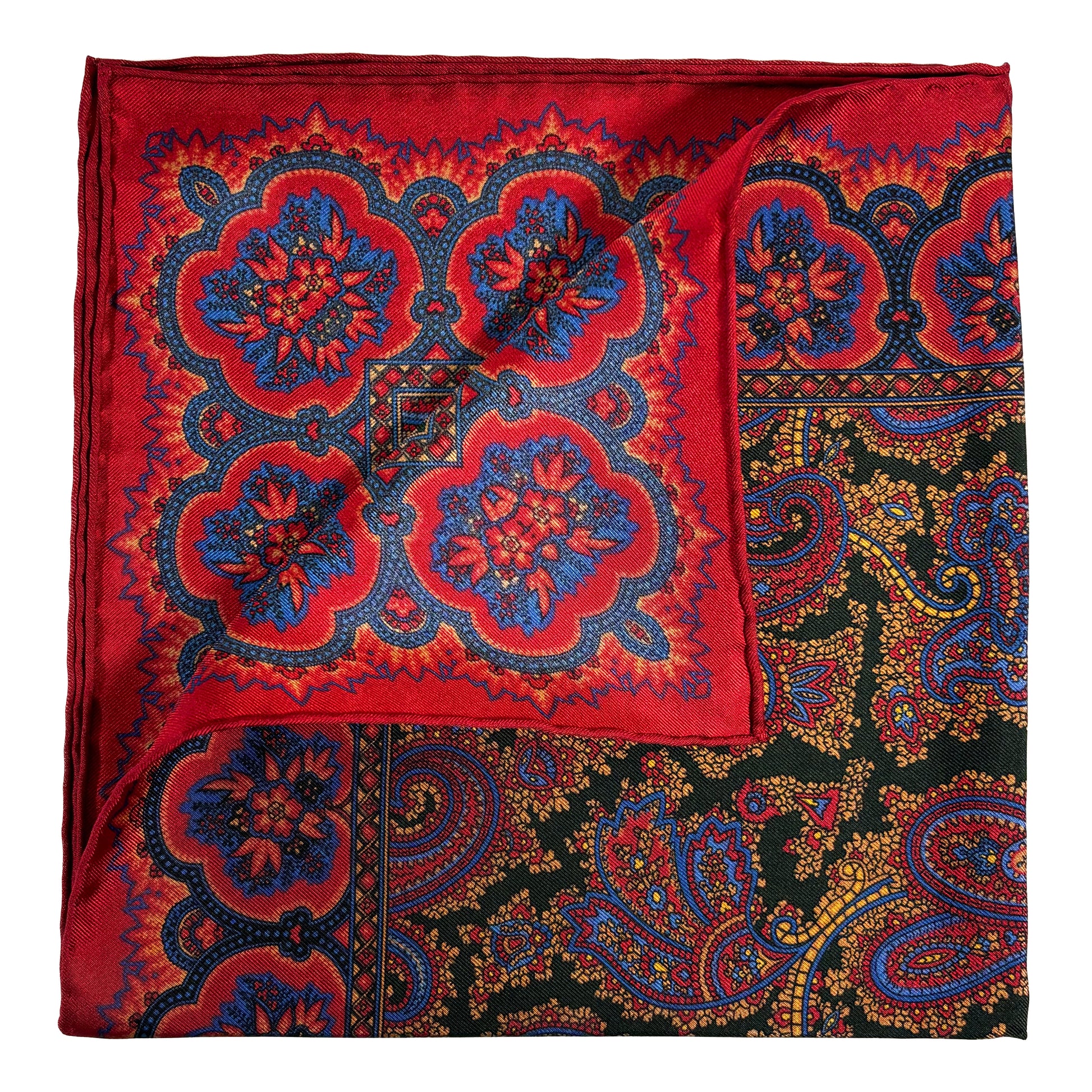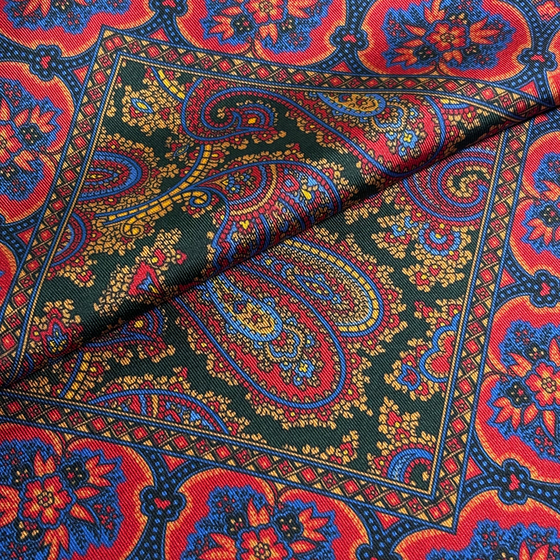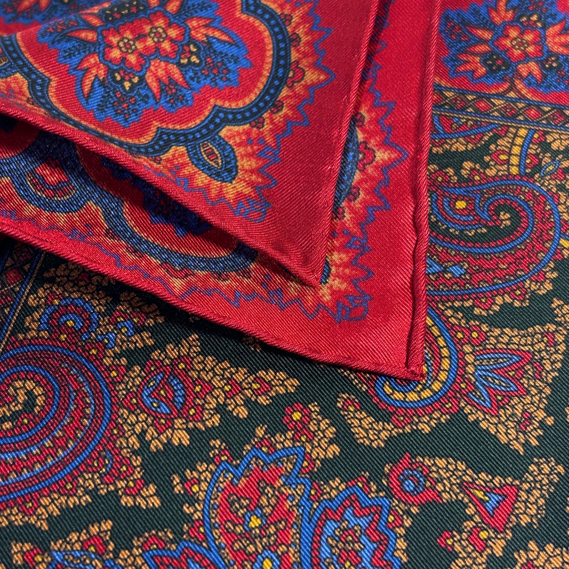 Red & Forest Green Ancient Madder Silk Pocket Square
