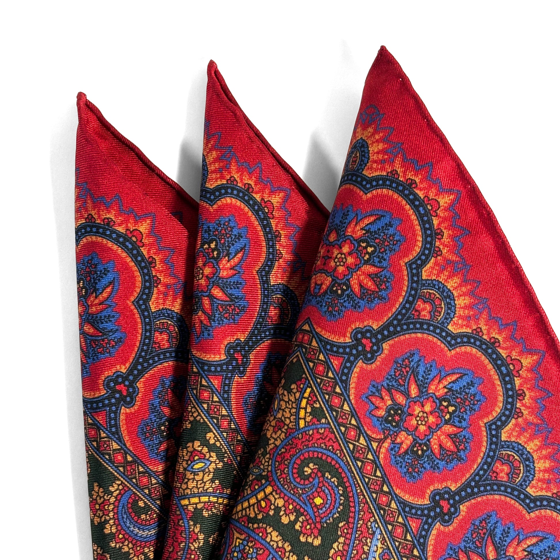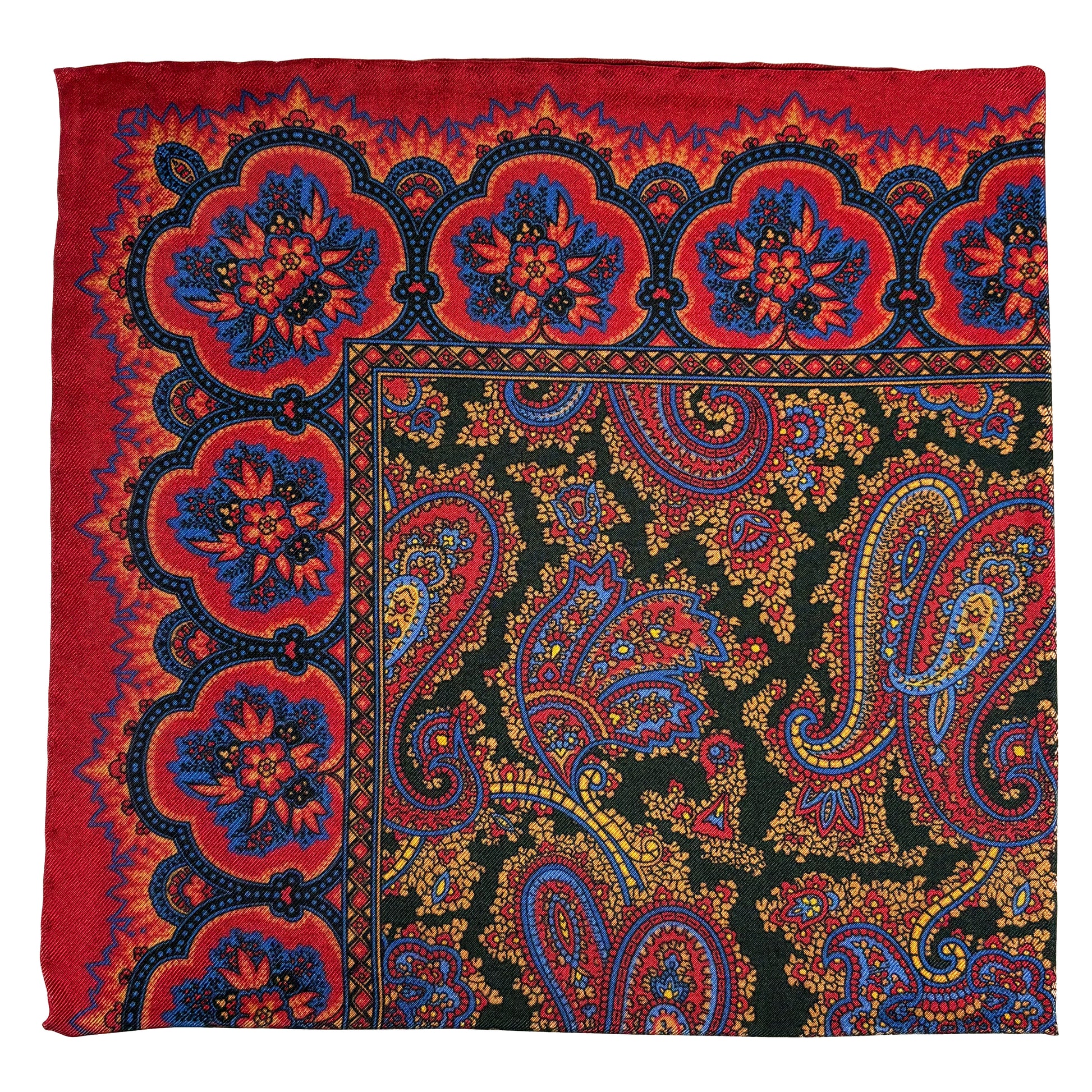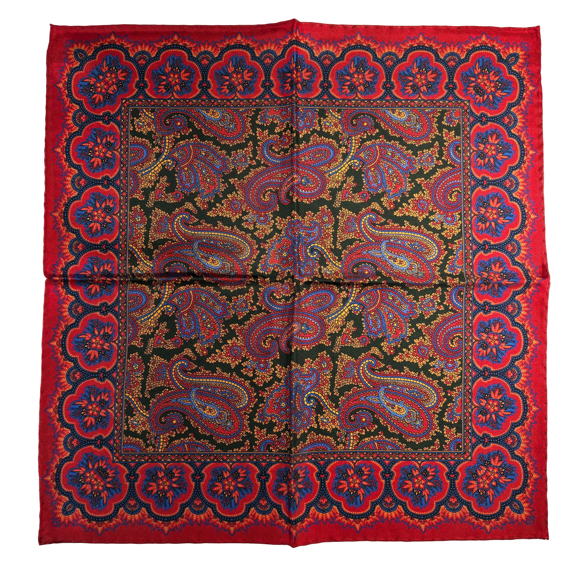 Red & Forest Green Ancient Madder Silk Pocket Square