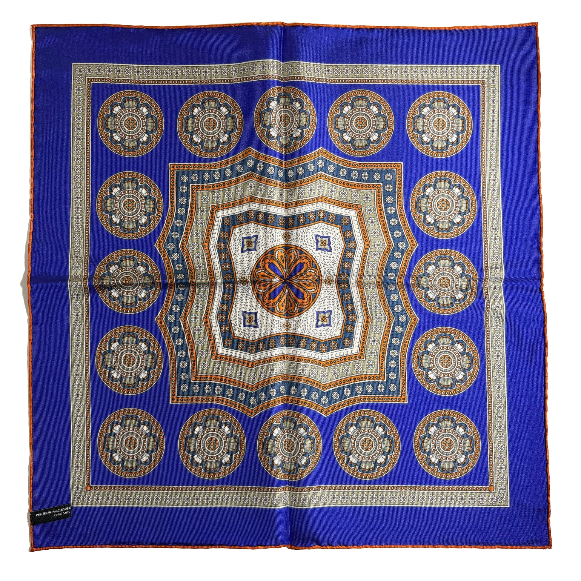 Regal Indigo & Orange Medallion Silk Pocket Square