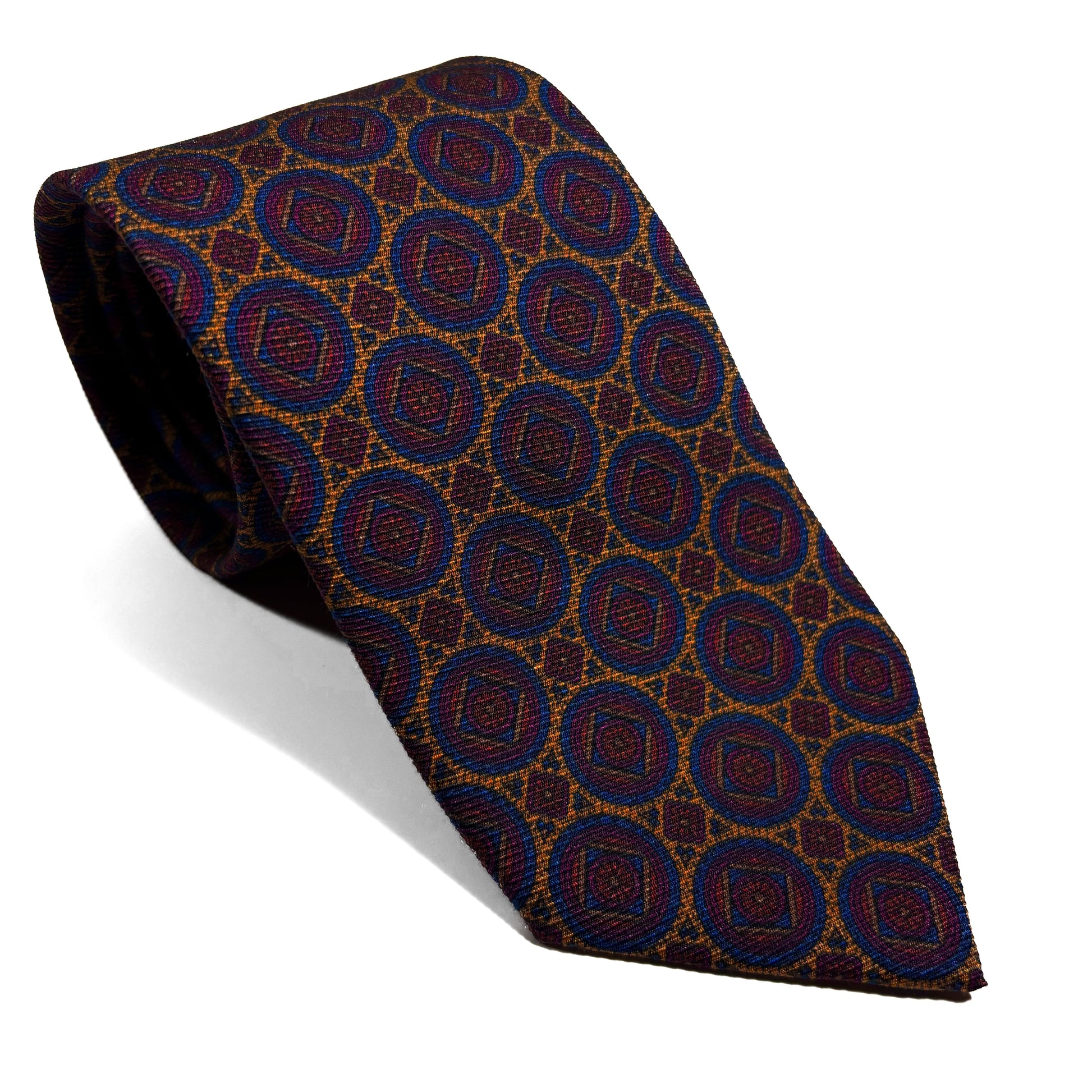 We advise wearing this tie with a navy blue suit and paired with a detailed pocket square with dashes of burgundy and blue.