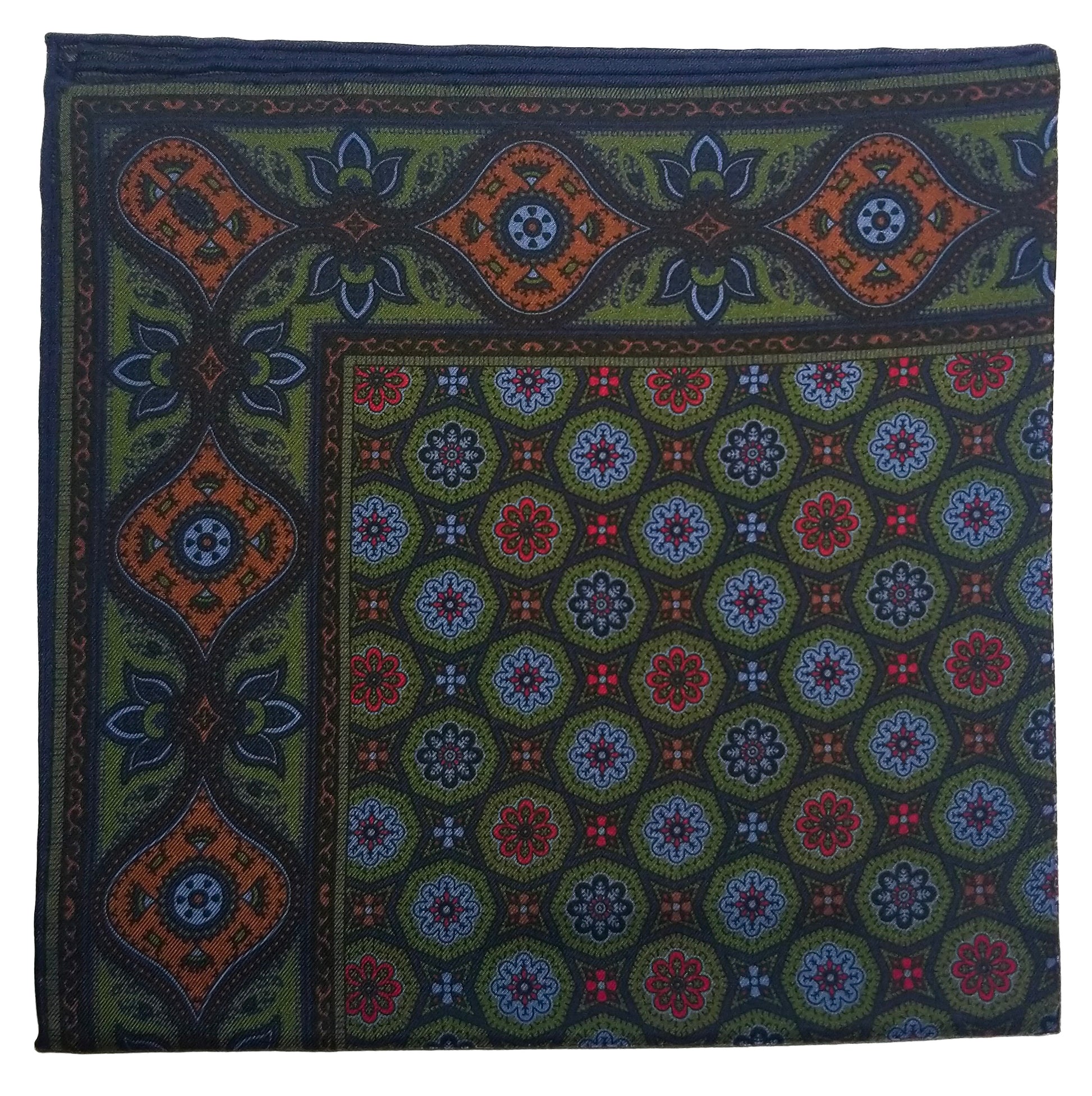 Screen-Printed Forest Green Ancient Madder Silk Pocket Square