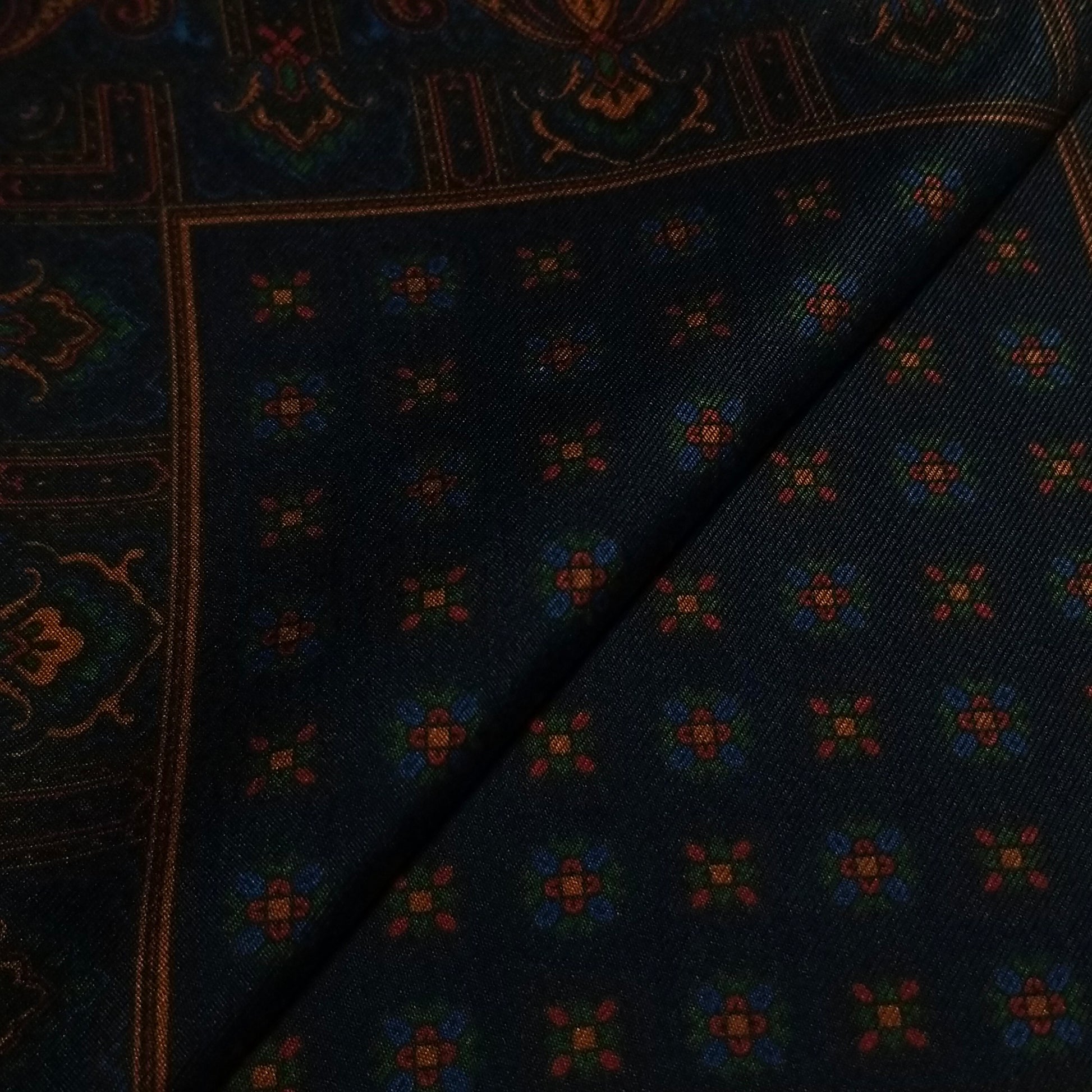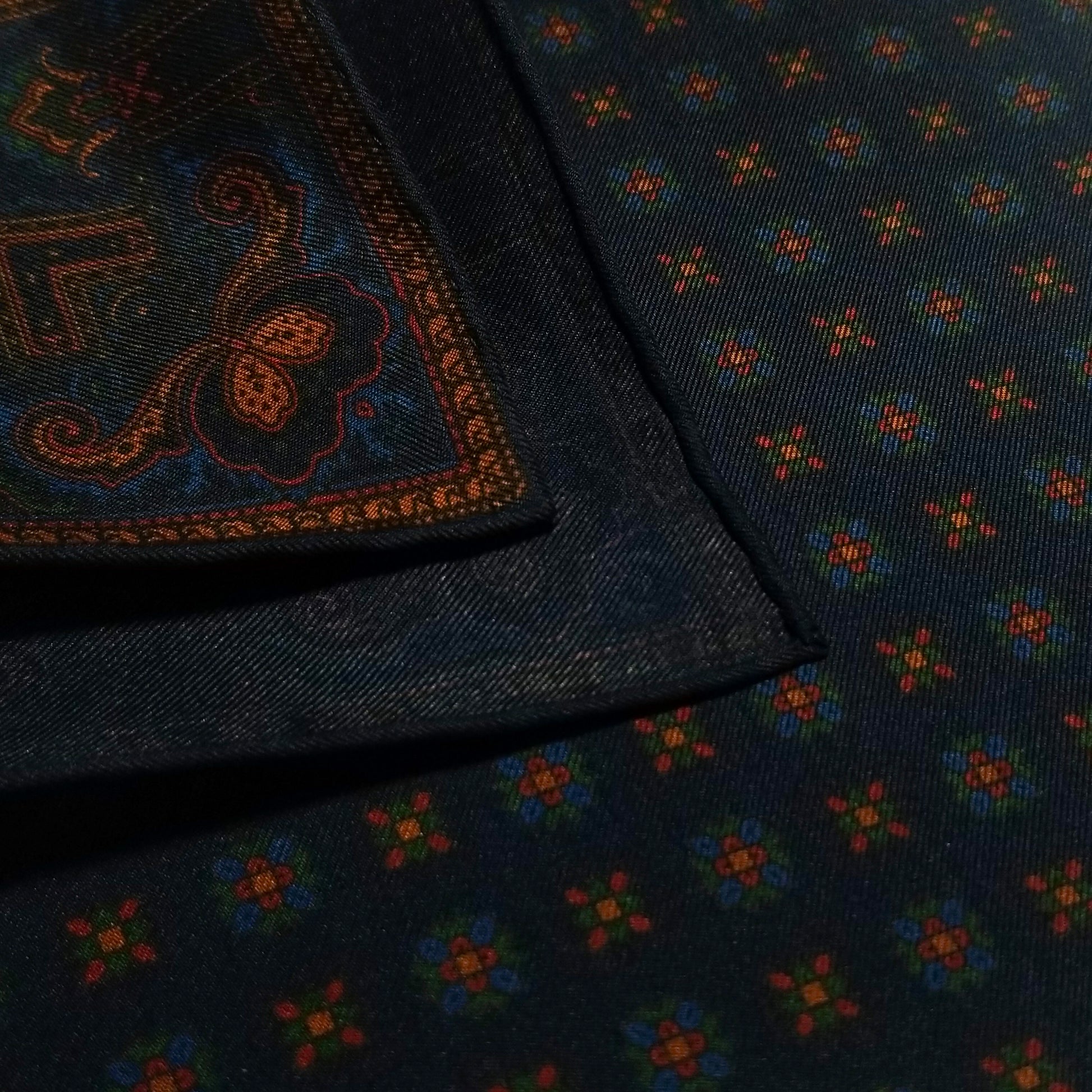 Ancient madder fabric, synonymous with timeless elegance, finds its roots in Macclesfield, England, renowned for its historic silk industry. This exquisite silk is distinguished by its rich, deep colors, velvety-matte texture, and “chalky hand”, achieved through a traditional dyeing process dating back centuries. Adorned with intricate patterns developed over years of refinement, each square is guaranteed to be a masterpiece.