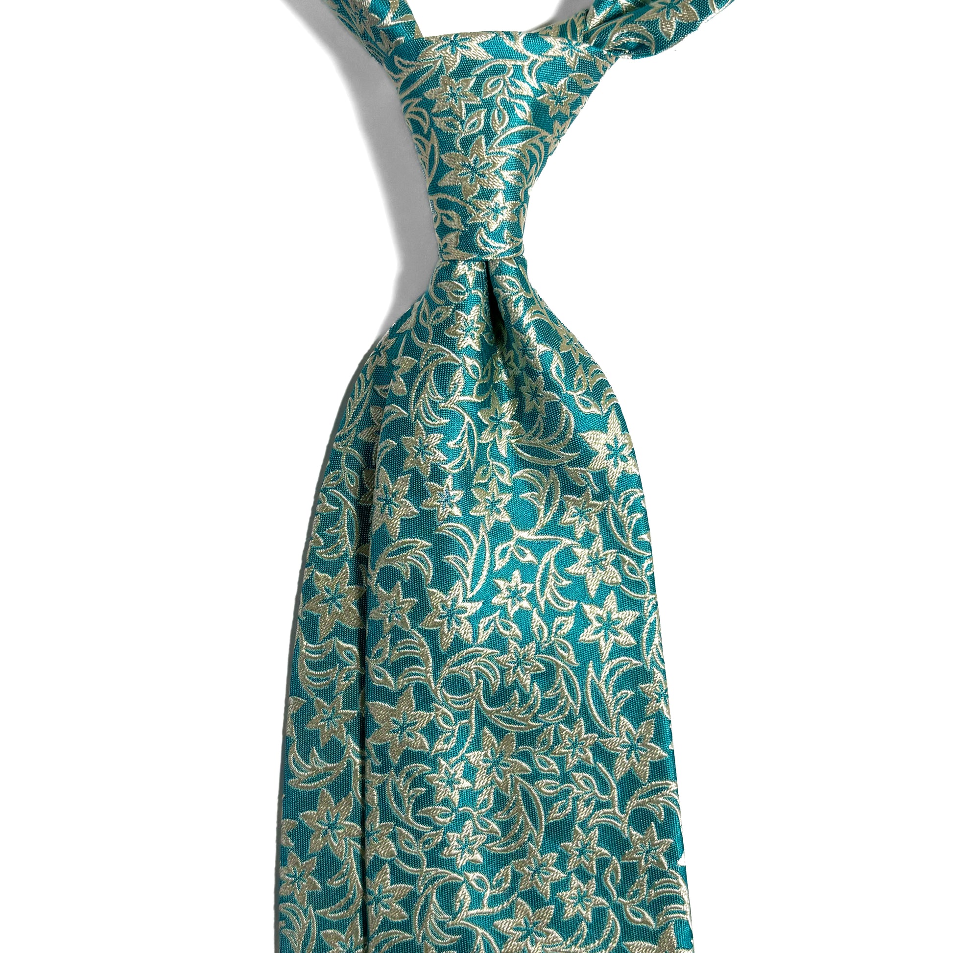 Sea Foam Green Floral Motif Silk Jacquard Tie
