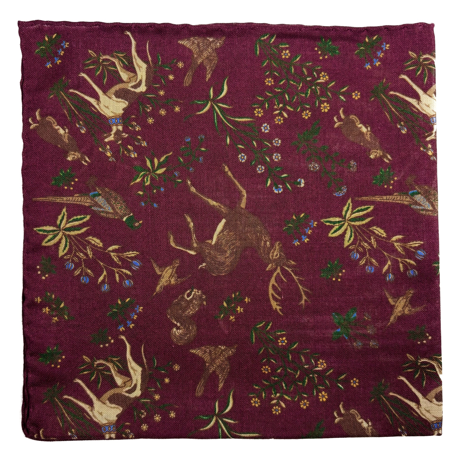Terra - Floral Animal Motif - Burgundy - Wool/Silk Pocket Square
