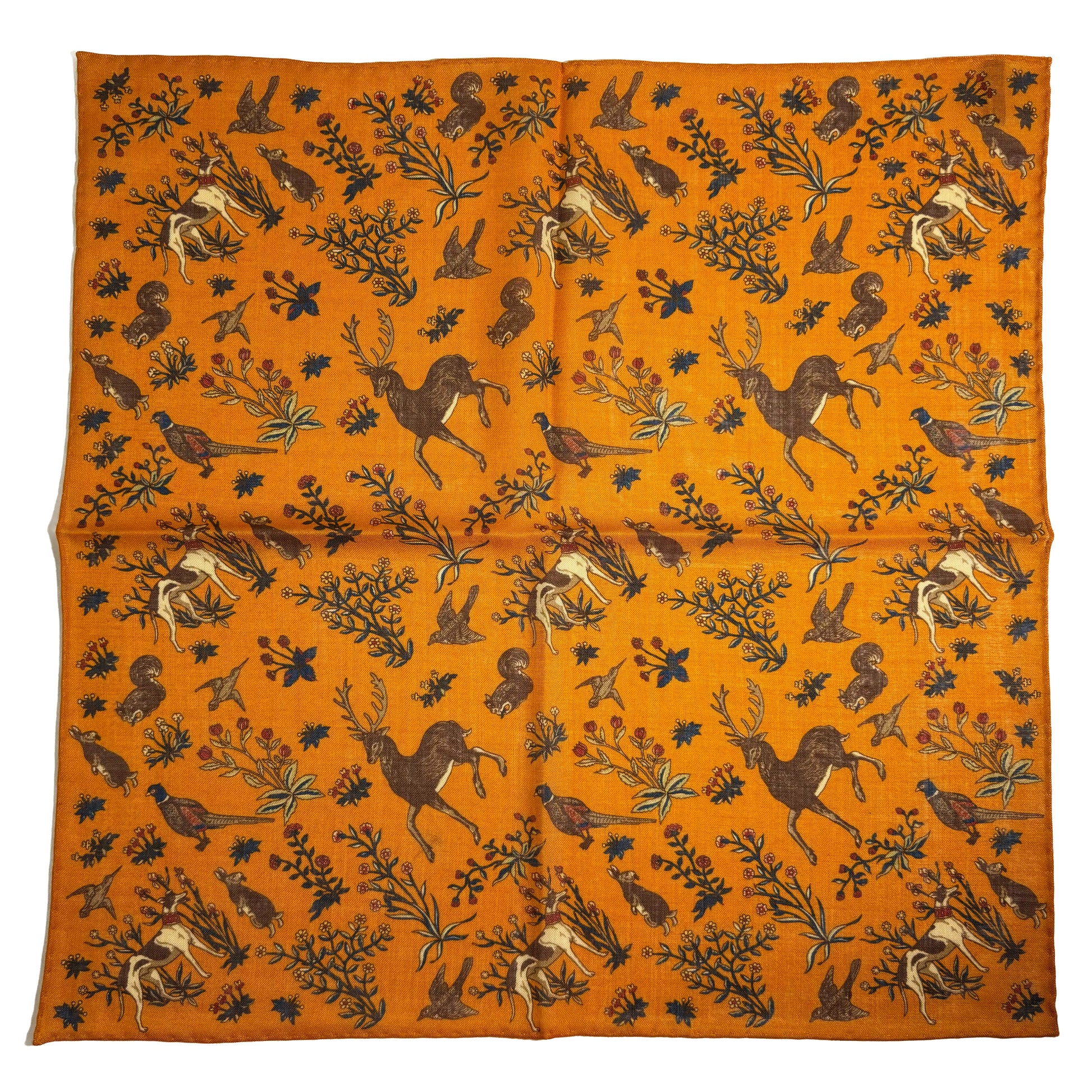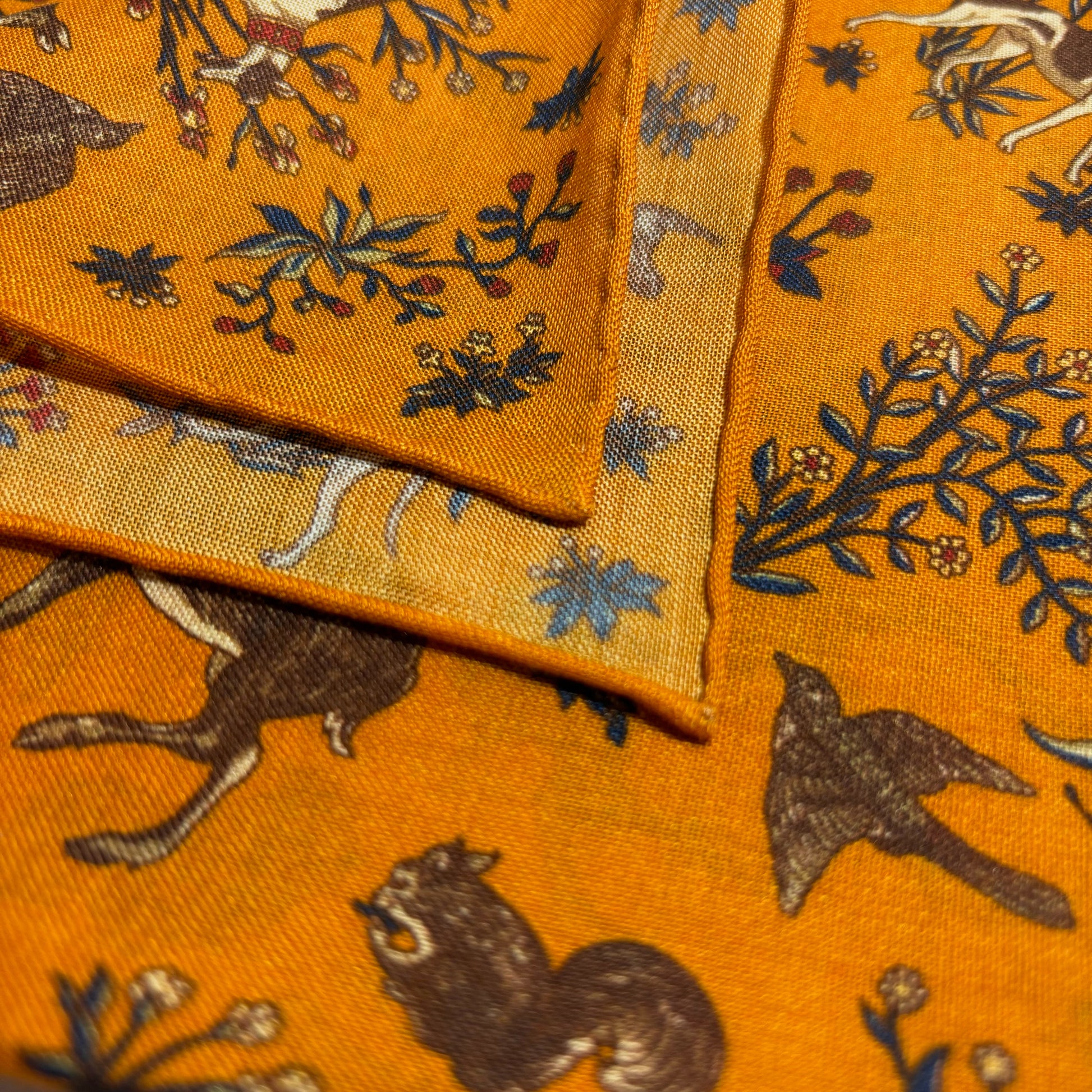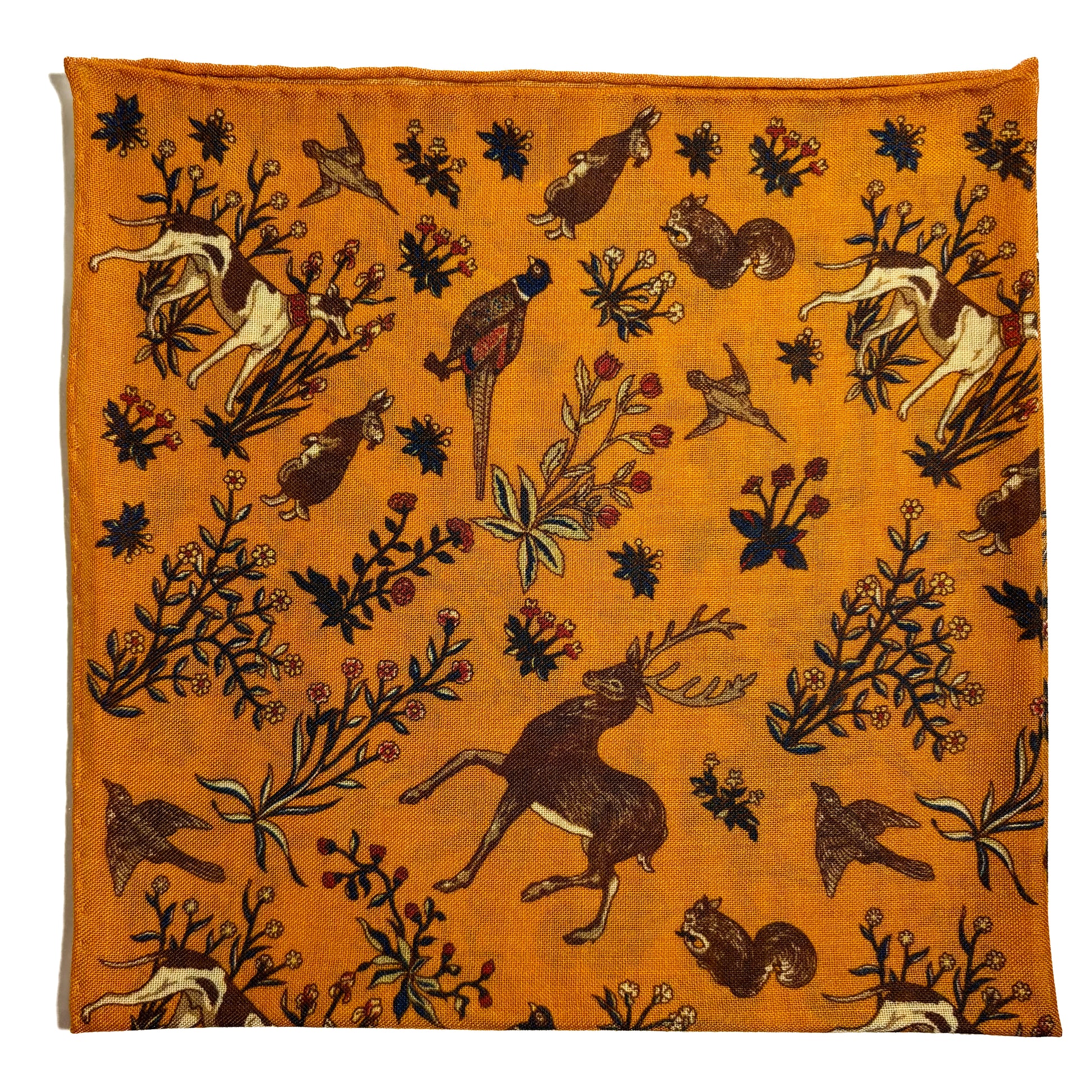 Terra - Floral Animal Motif - Mustard Yellow - Wool/Silk Pocket Square