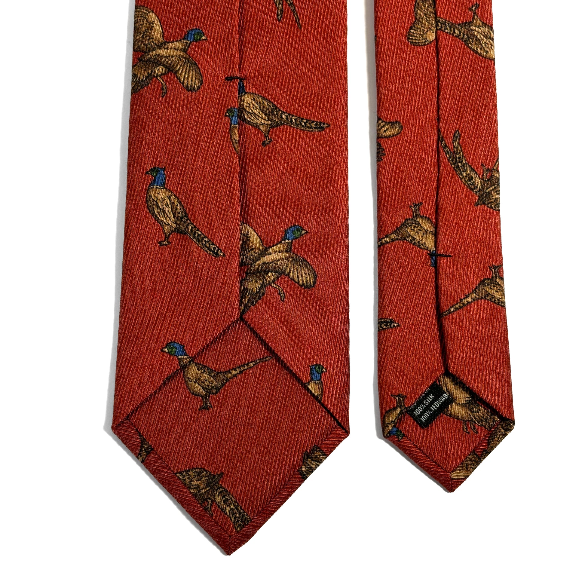Terracotta Orange Pheasant Print Italian Madder Silk Tie