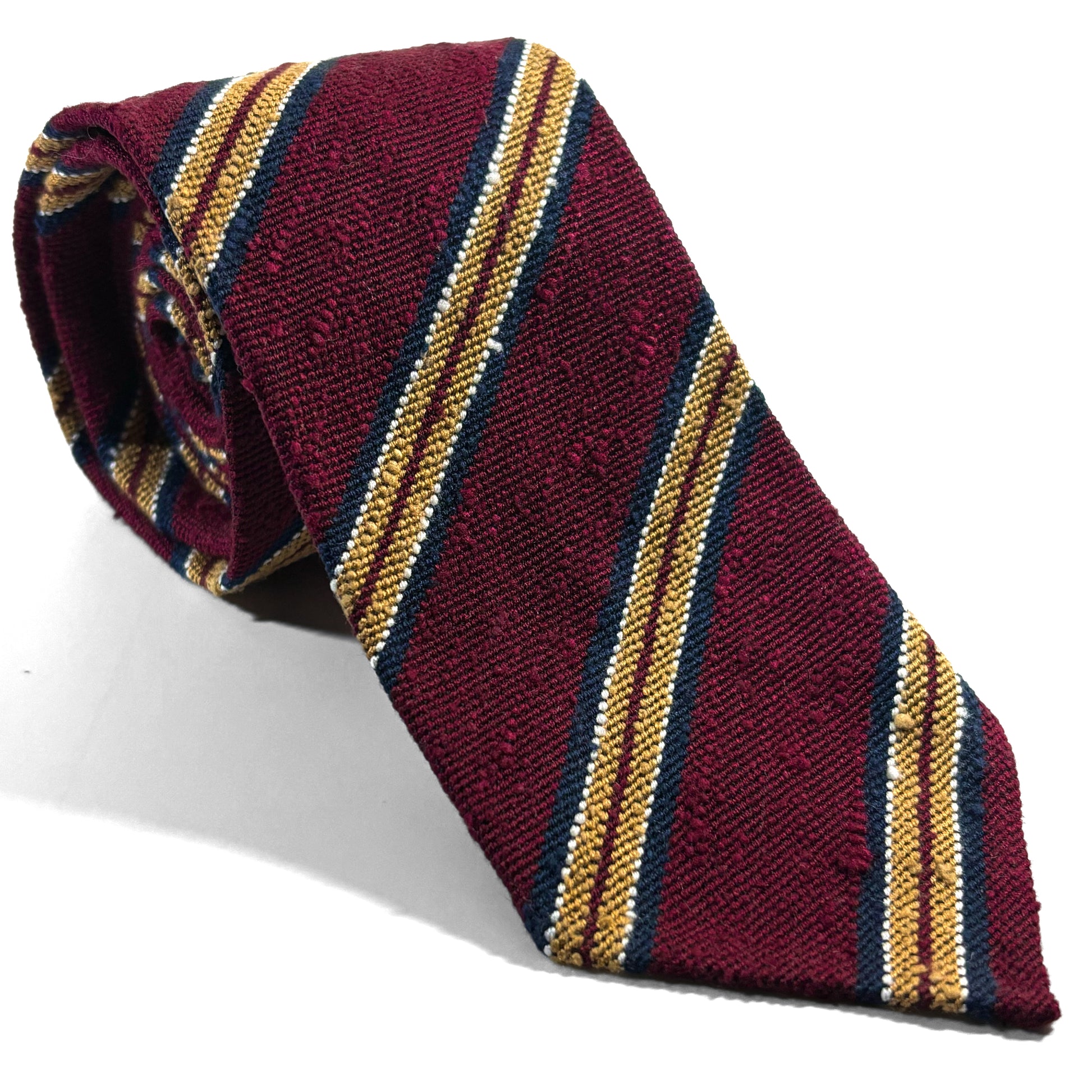 Untipped Burgundy & Gold Striped Silk Shantung Tie