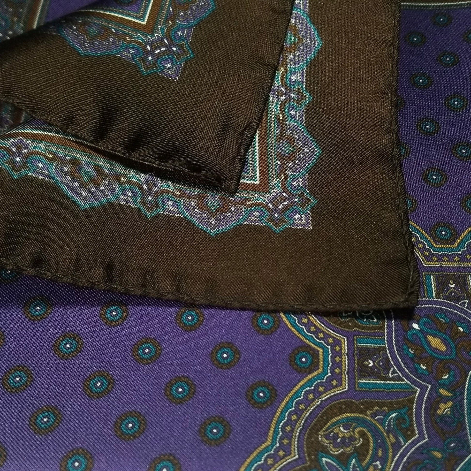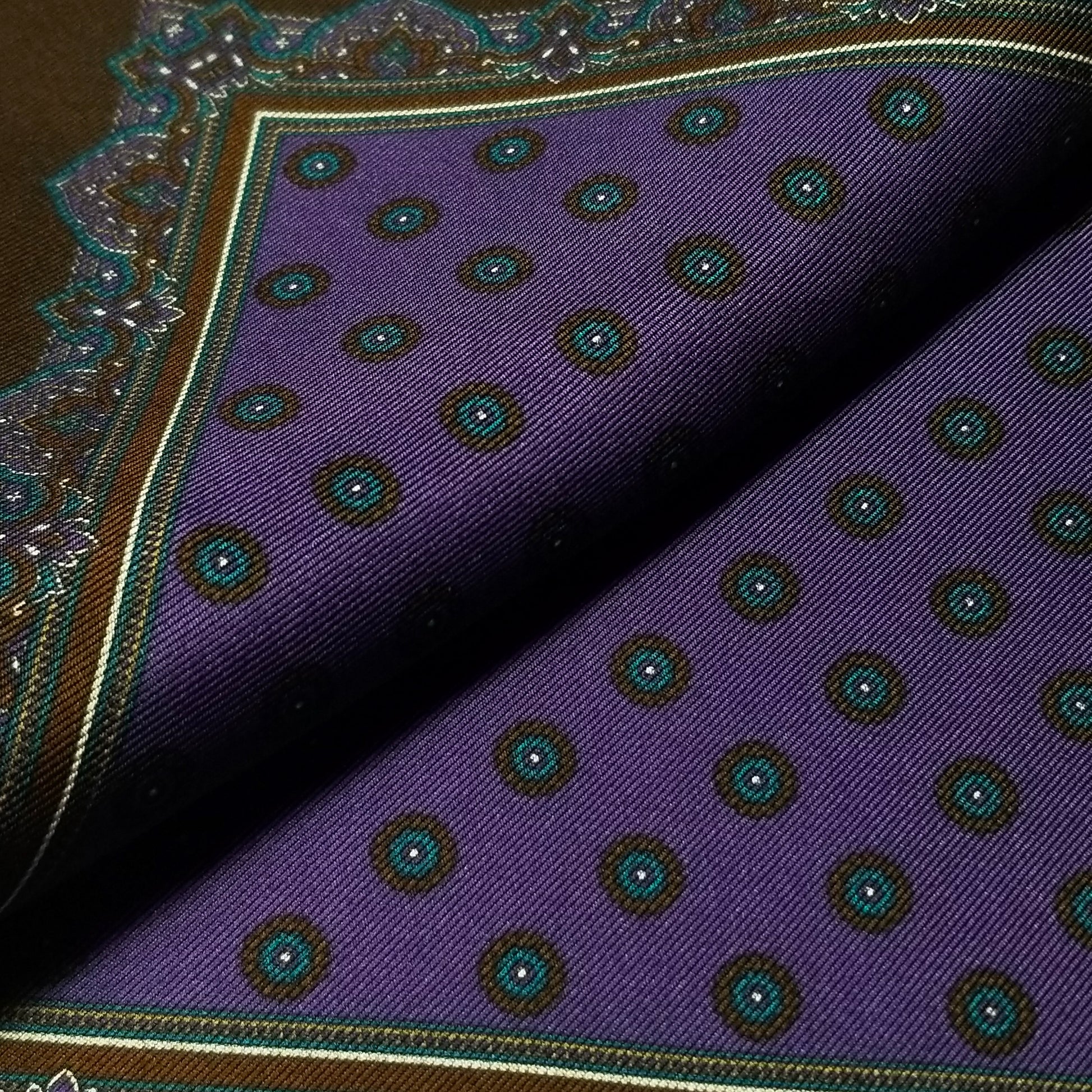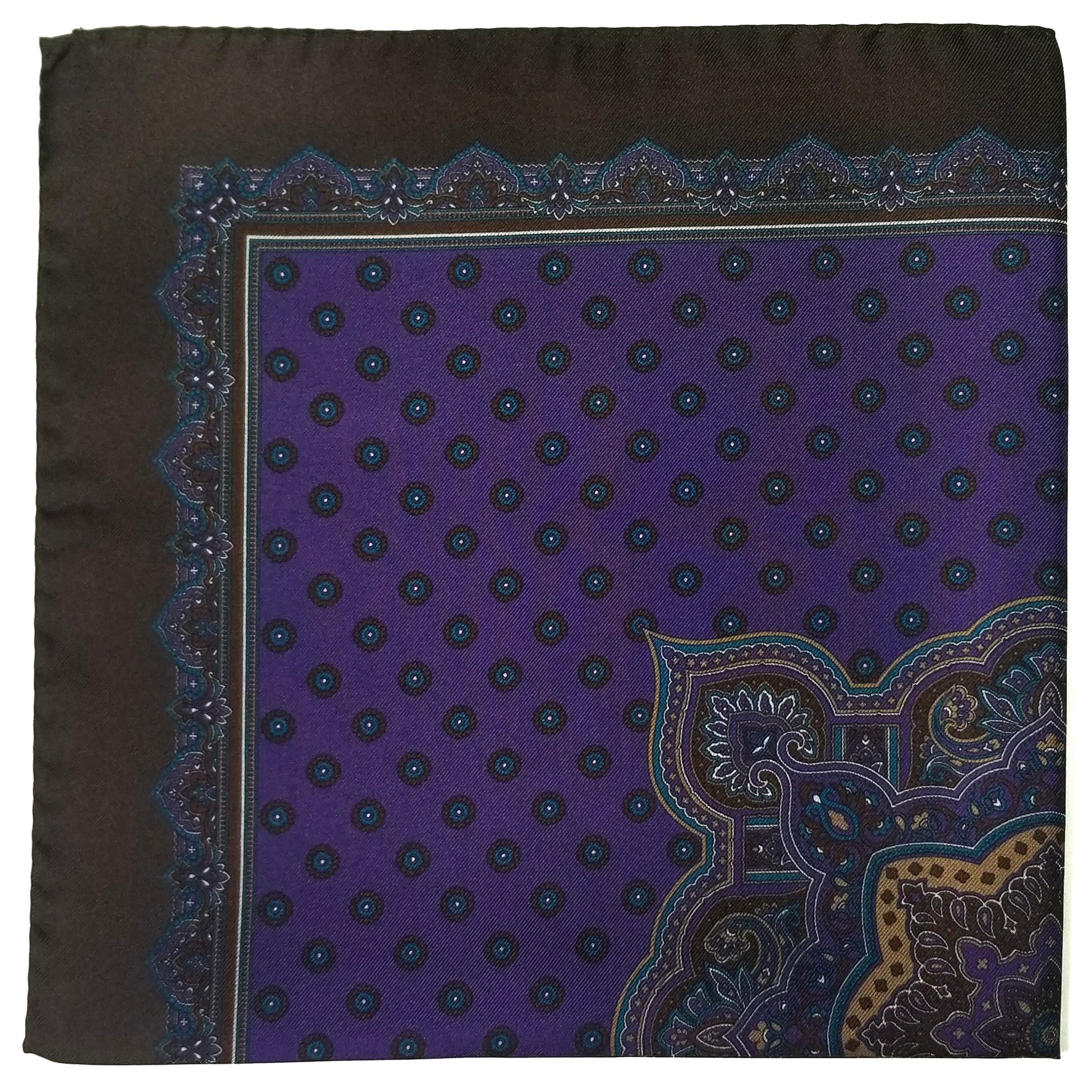 17" Purple / Brown Geometric Silk Twill Pocket Square